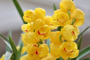 シンビジウムは、その長い花期も魅力のひとつです。一般的には、花が数ヶ月にわたって楽しめるため、切り花としても非常に人気があります。受け取った方にも長い間楽しんでいただけるのも嬉しいですよね。